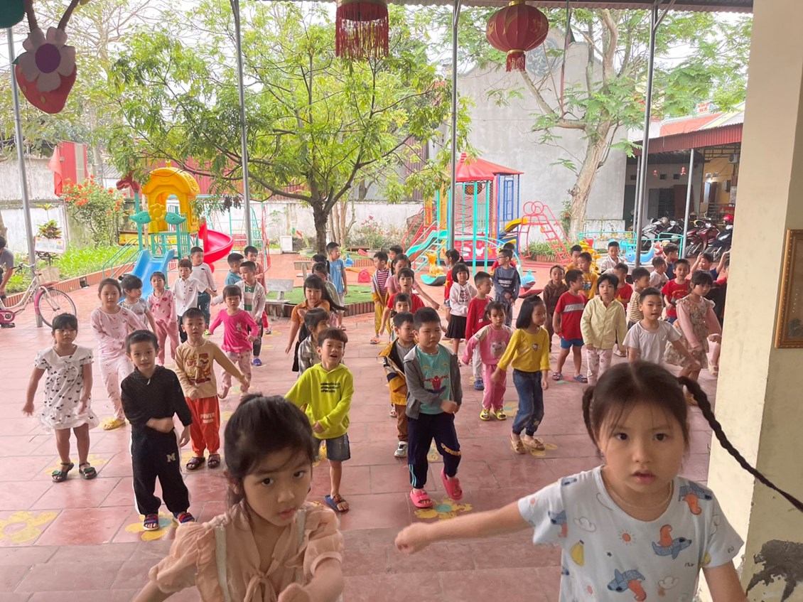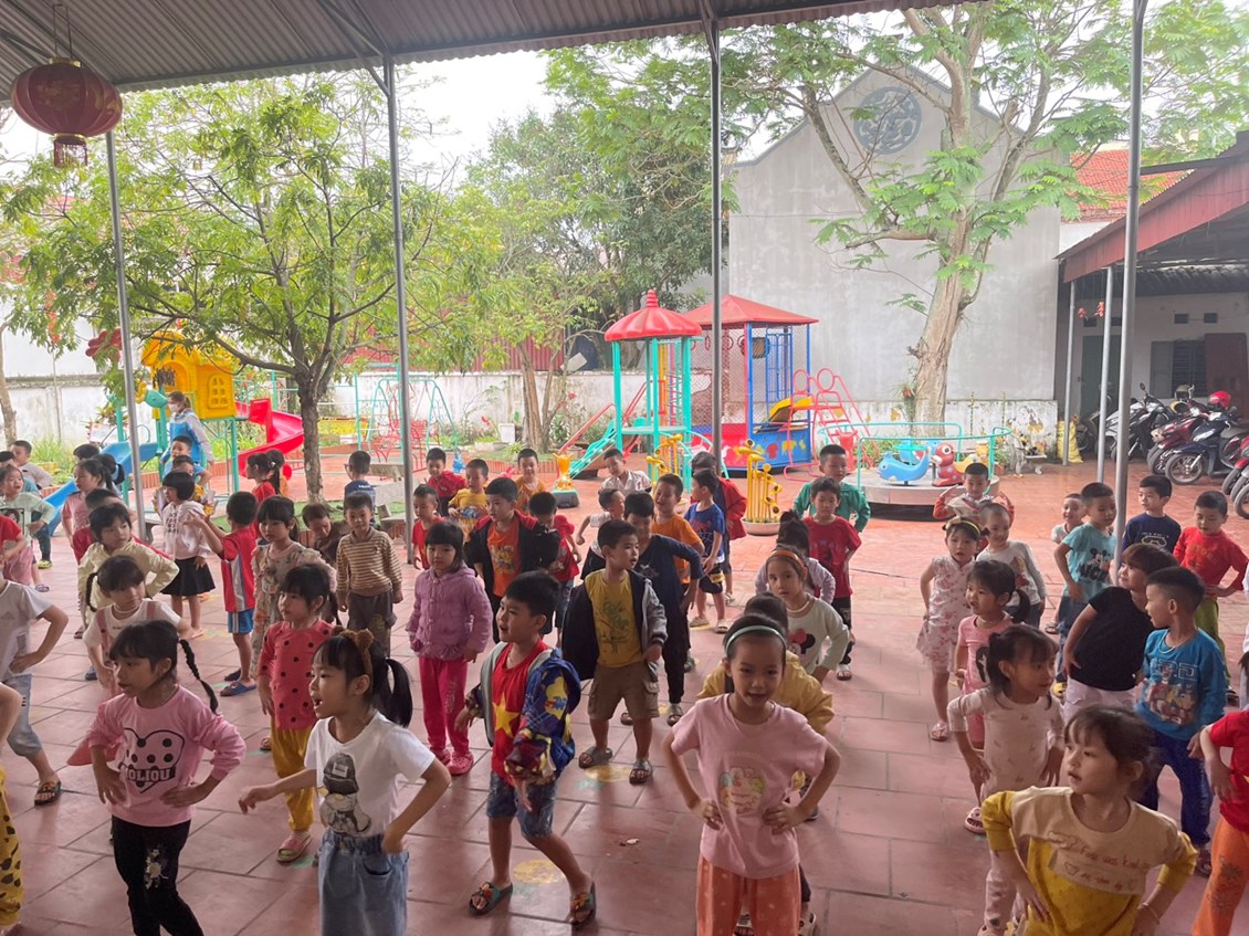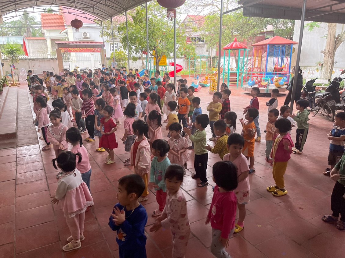 * Một số hình ảnh trẻ tham gia hoạt động thể dục buổi sáng tại hai khu