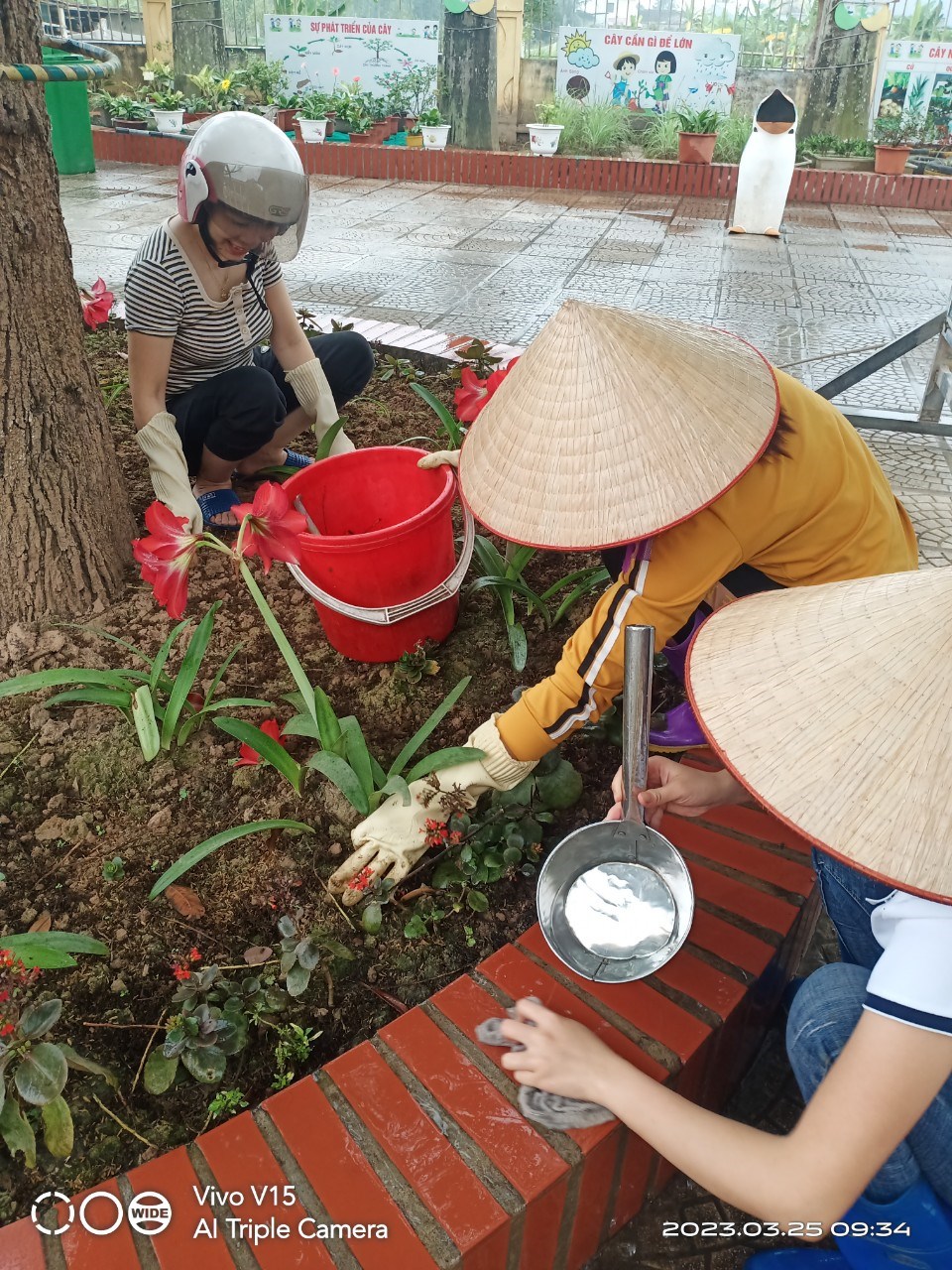 Thanh niên trồng hoa trạng nguyên trang trí khuôn viên nhà trường
