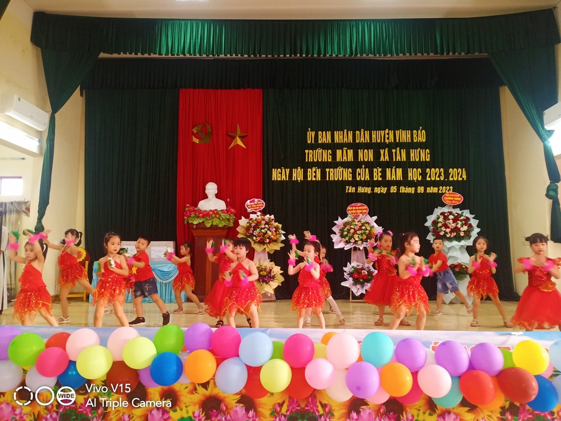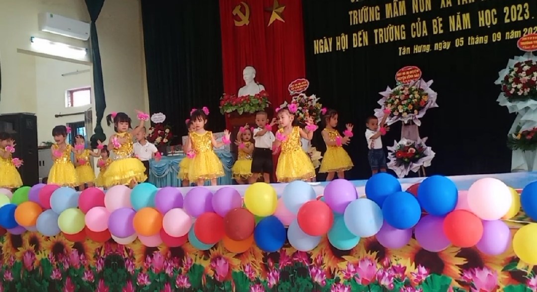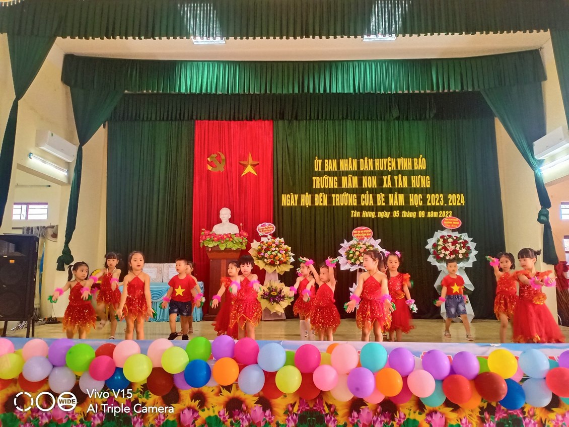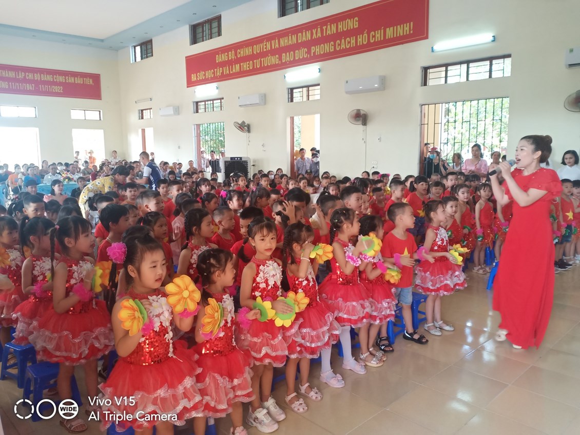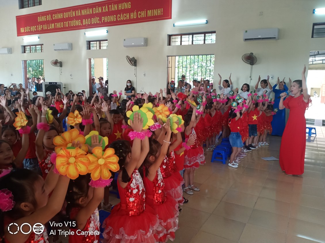Kết thúc buổi lễ là chương trình văn nghệ tạo không khí vui tươi phấn khởi chào đón năm học mới của cô và trò trường Mầm non Tân Hưng