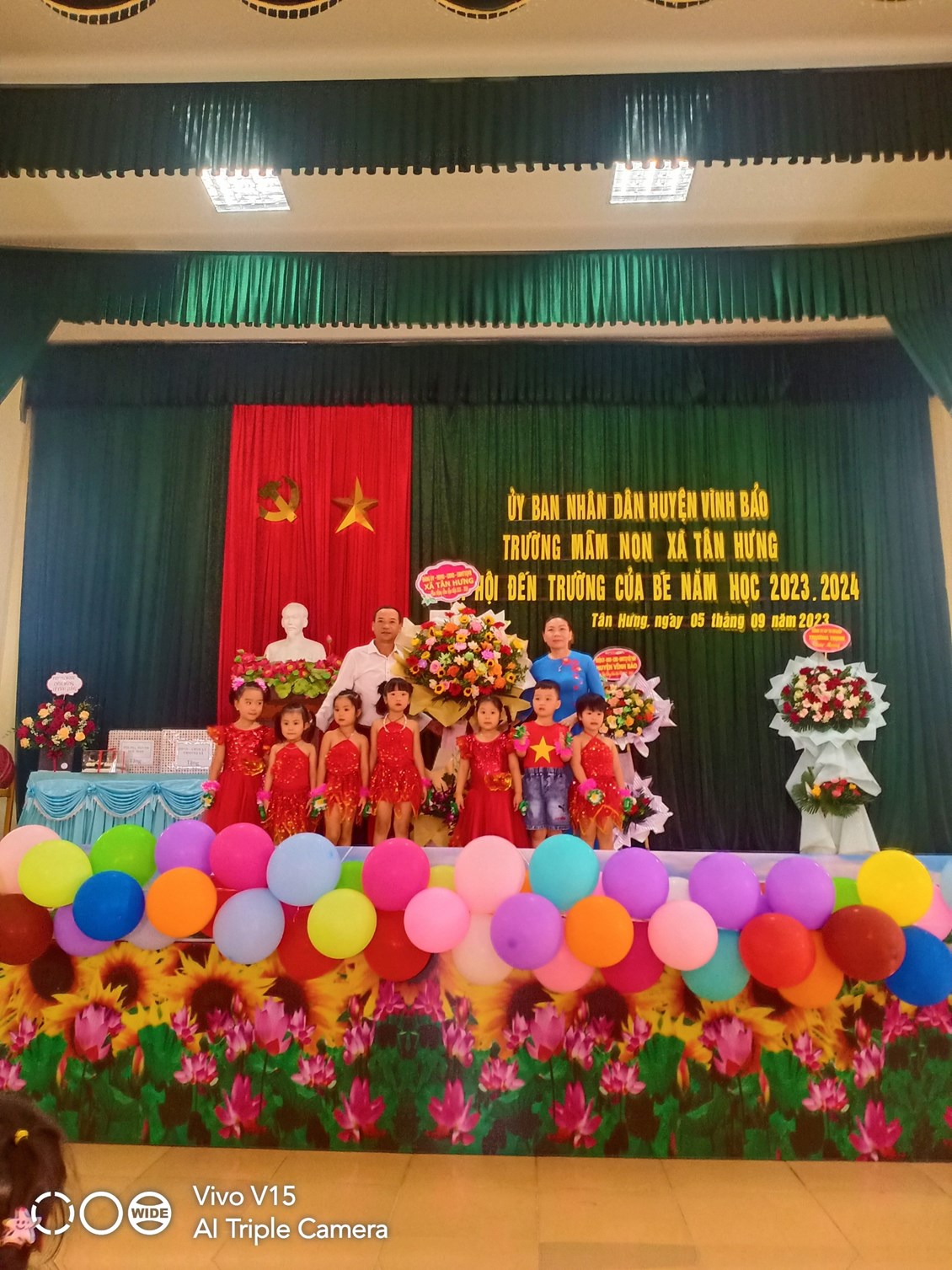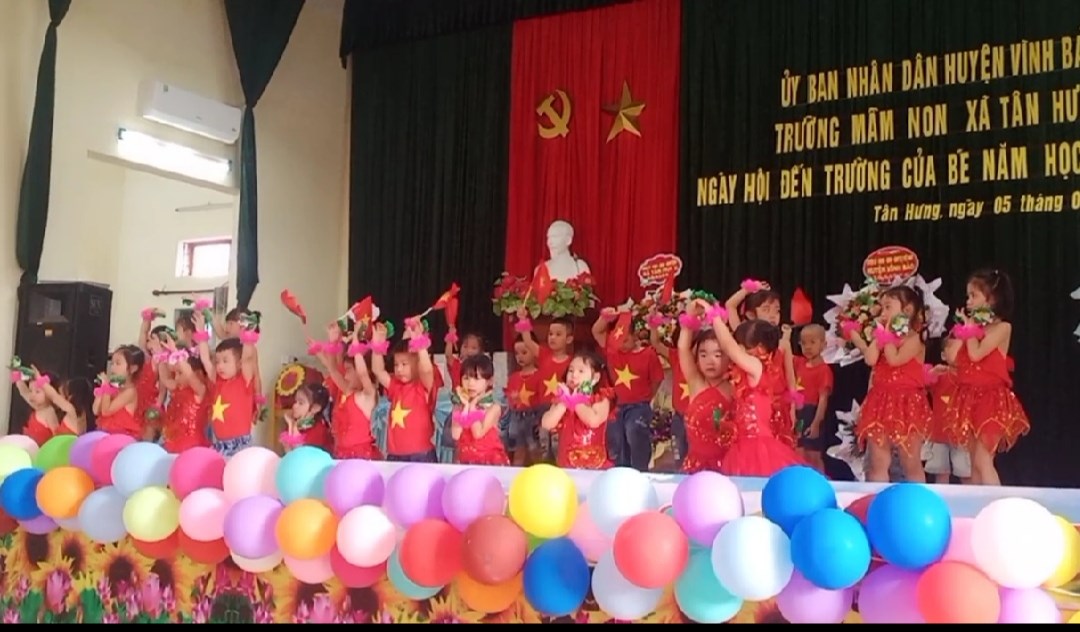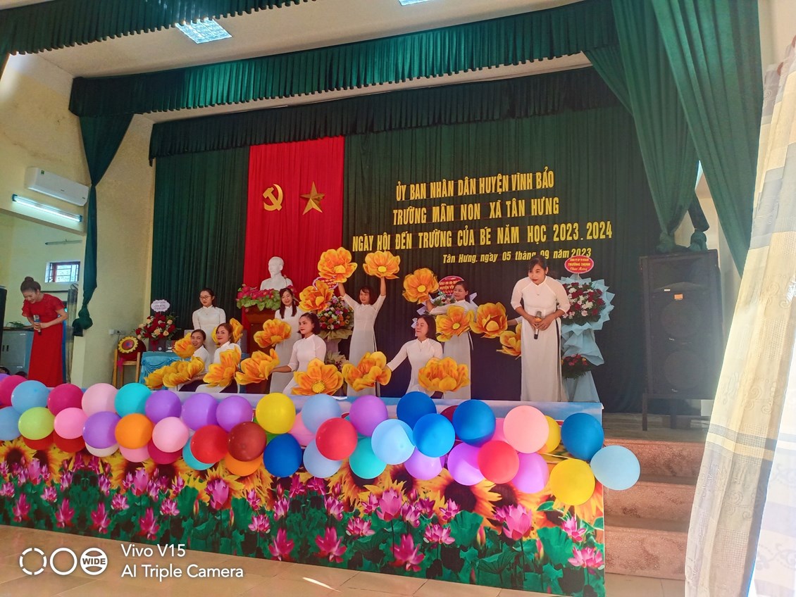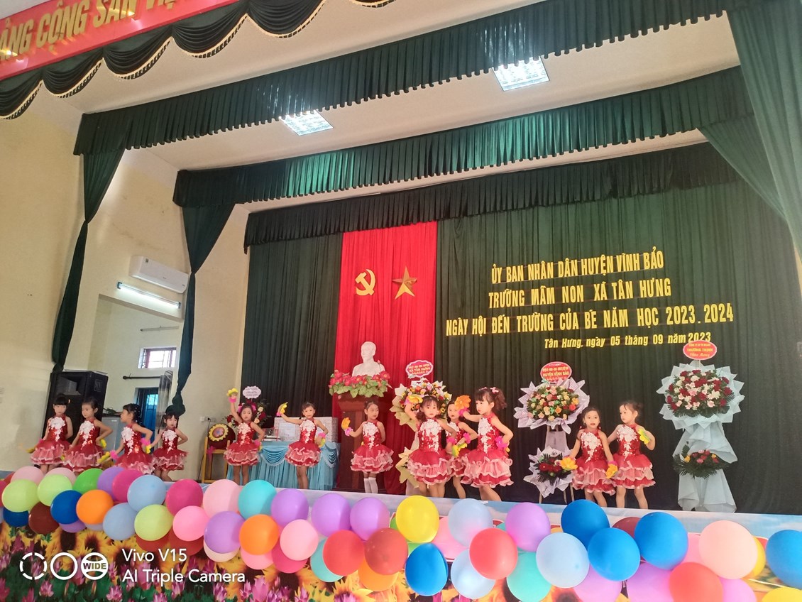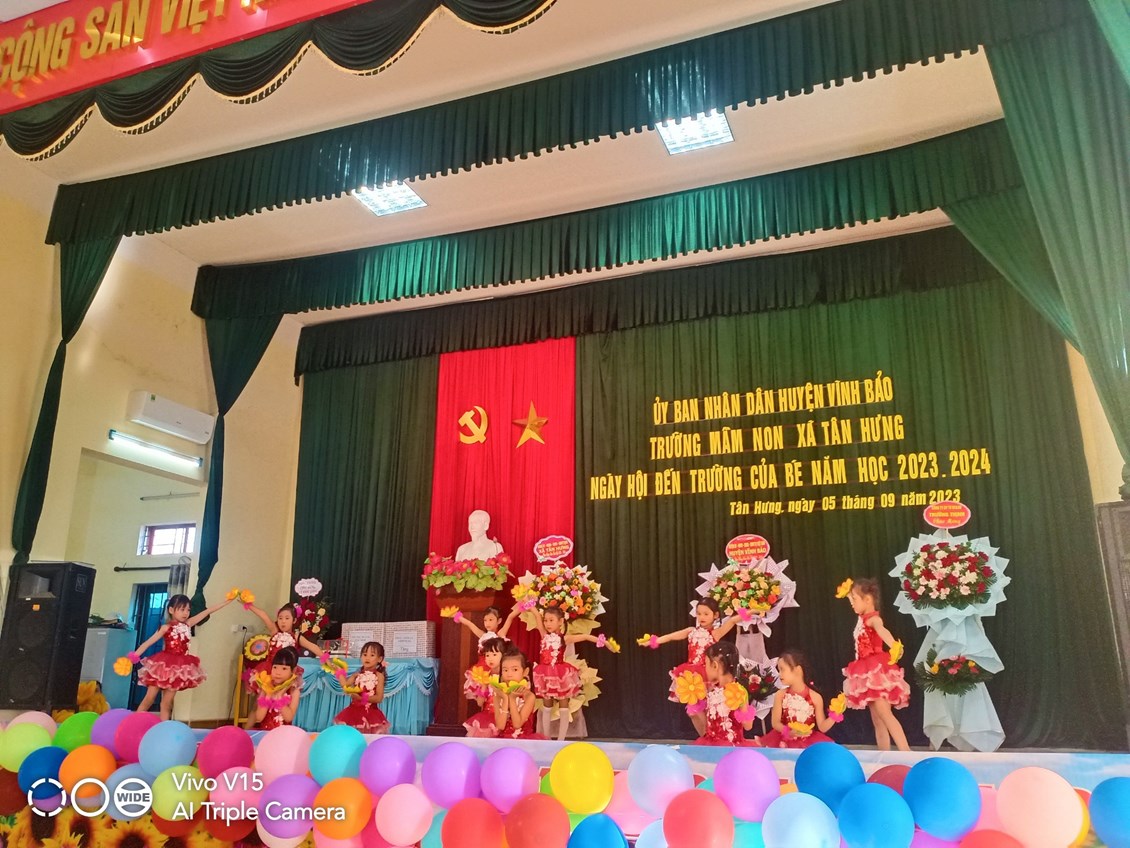 Kết thúc buổi lễ là chương trình văn nghệ tạo không khí vui tươi phấn khởi chào đón năm học mới của cô và trò trường Mầm non Tân Hưng