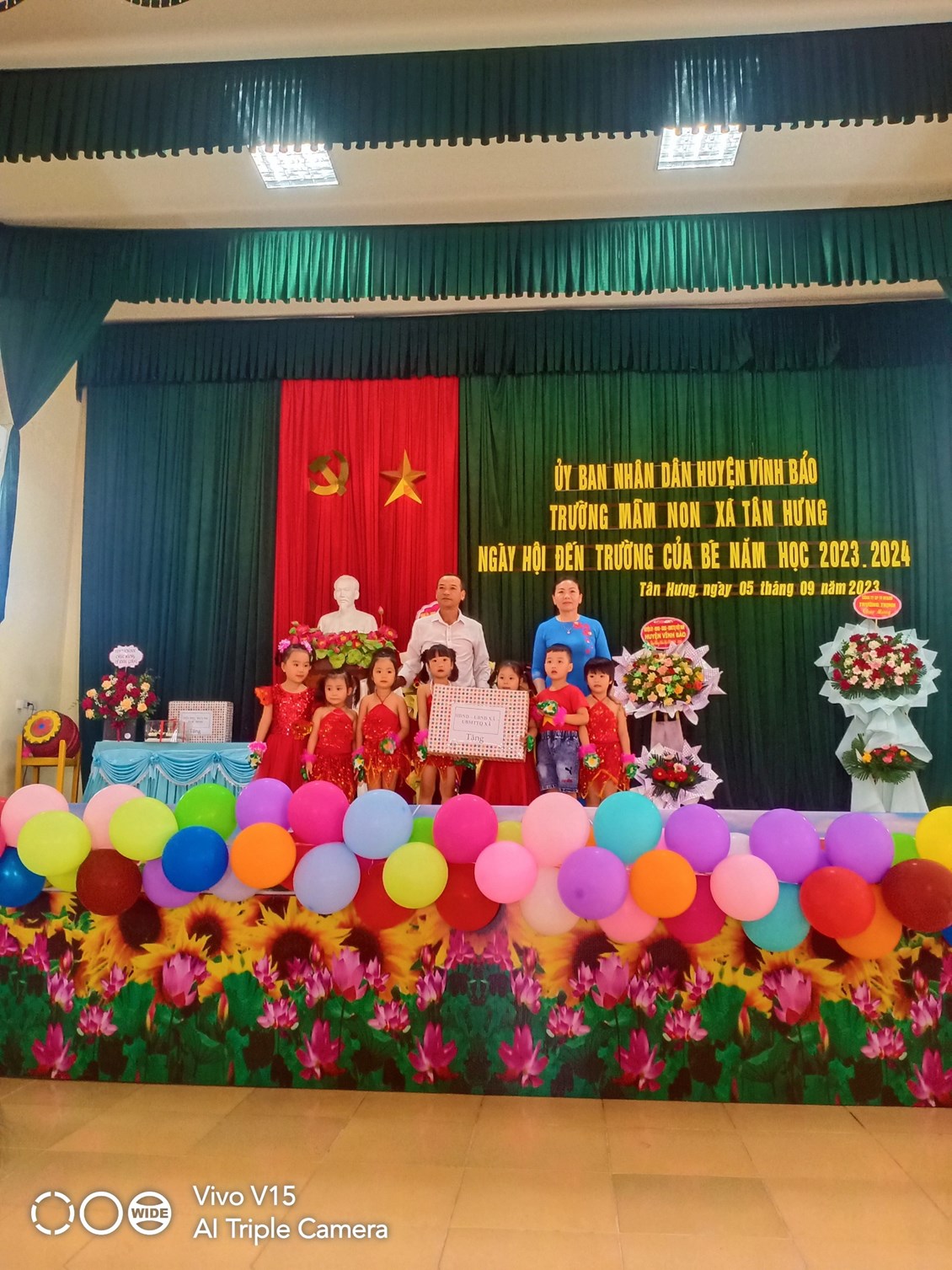 Nhà trường đã nhận được sự quan tâm sâu sắc của các đồng chí lãnh đạo đại diện cho Đảng ủy, HĐND, UBND xã Tân Hưng, , các ban ngành đoàn thể, ban đại diện cha mẹ học sinh tặng hoa chúc mừng nhân dịp khai giảng.